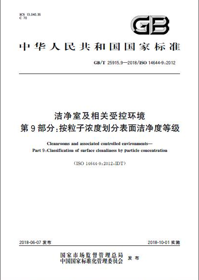 《洁净室及相关受控环境 第9部分:按粒子浓度划分表面洁净度等级》(GB/T 25915.9-2018)