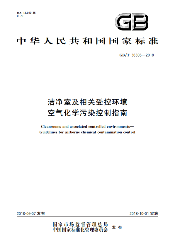《洁净室及相关受控环境 空气化学污染控制指南》 (GB/T 36306-2018)