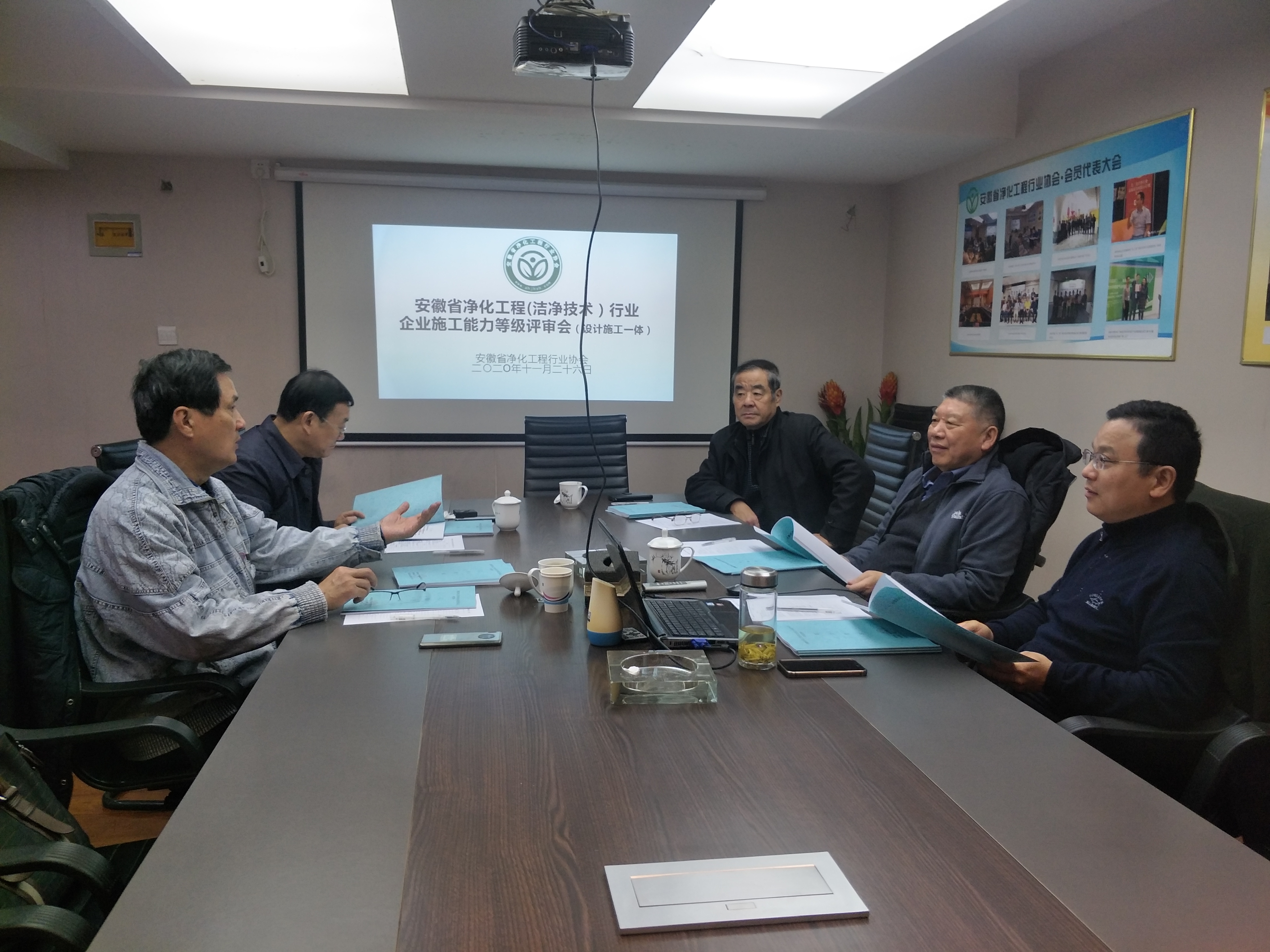 11月26日下午,由省净协组织专家召开2020年企业申报安徽省净化工程(洁净技术)行业企业施工能力等级第四次评审会,本次评审专家由省直单位专家和行业专家组成。各专家秉着公平、公正、严肃、认真负责的态度对企业单位报送材料进行认真考核评审,评审会由省净协张会长主持同时也是本次评审组组长.